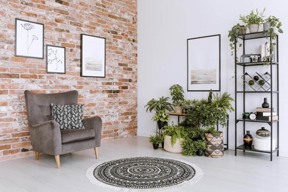 Nothing brings a brick wall to life like greenery. Even one larger plant changes the perception of the entire room.
