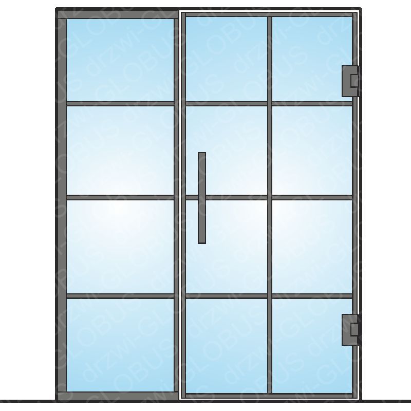 Drzwi szklane LOFT dwuskrzydłowe wahadłowe z doświetlem bocznym – montaż bezpośrednio do muru