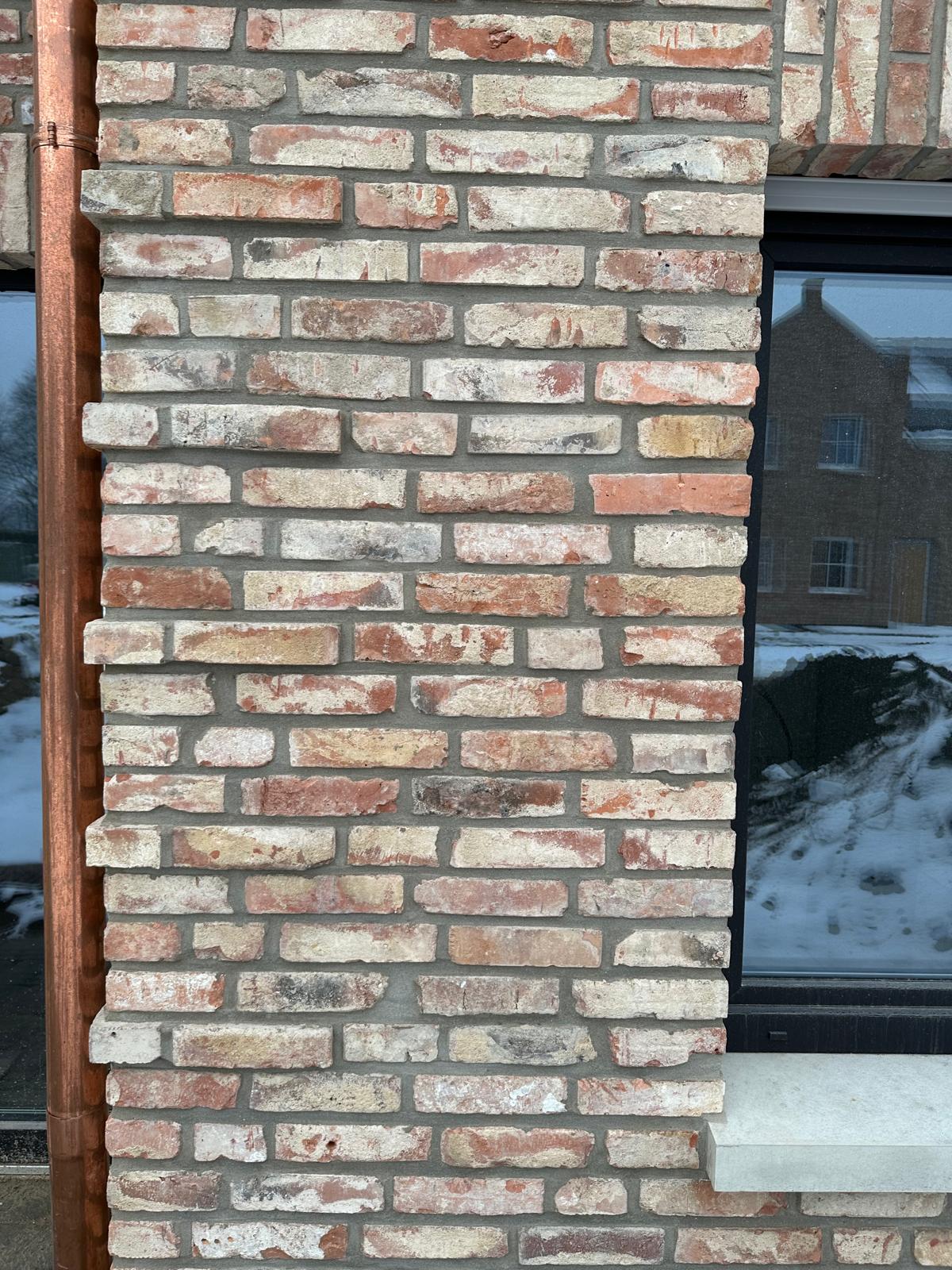 Oferujemy wysokiej jakości płytki z cegły rozbiórkowej, idealne do realizacji fasad i elewacji. Płytki wykonane z ciętej cegły rozbiórkowej w kolorze retro red, z ciemnoszarą fugą, doskonale podkreślają charakter i styl budynku.