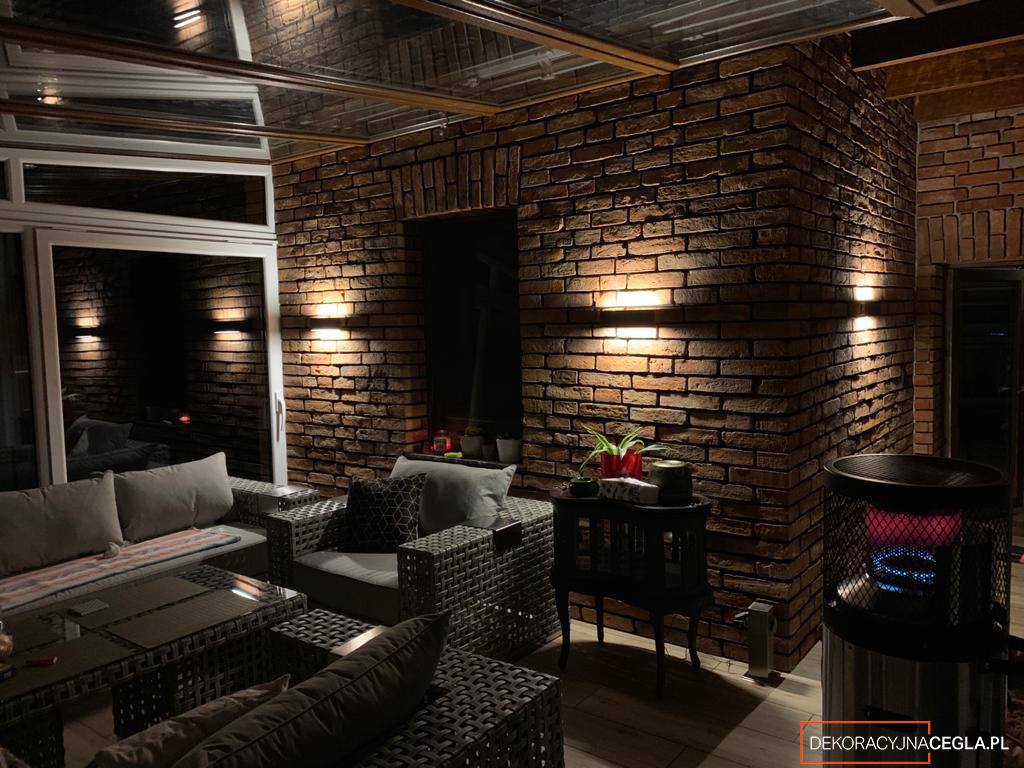 Płytka cięta ze starej cegły środki Loft pomarańczowa fuga antracyt