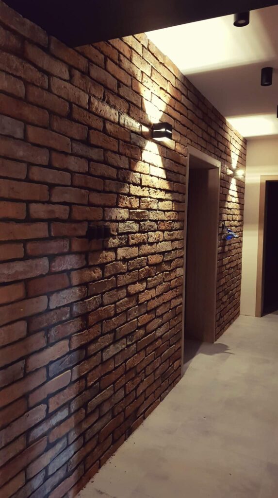 Stara cegła retro, cięta na płytkę czerwona Retro z fugą antracyt