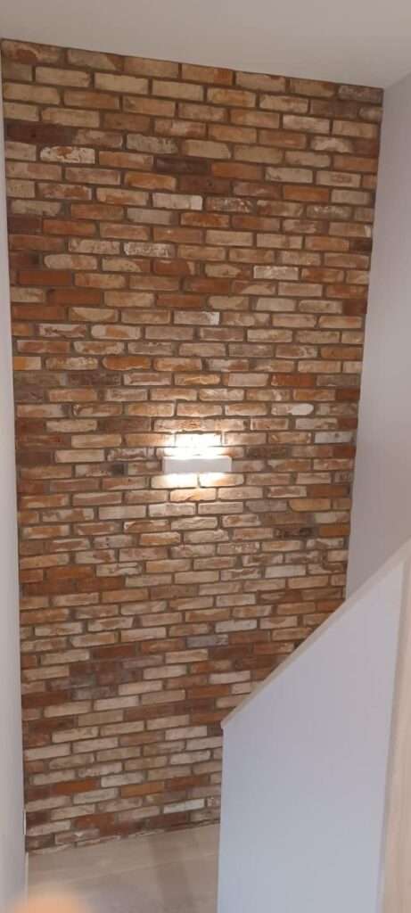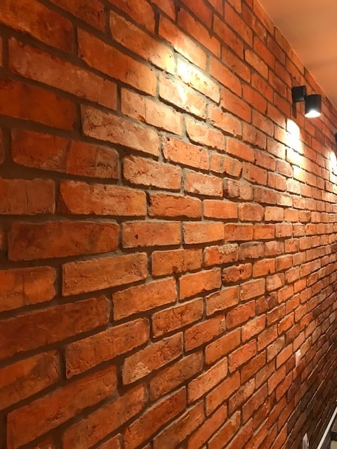 Płytka rozbiórkowa ze starej cegły, Classic czerwona, lico, fuga ciemno szara