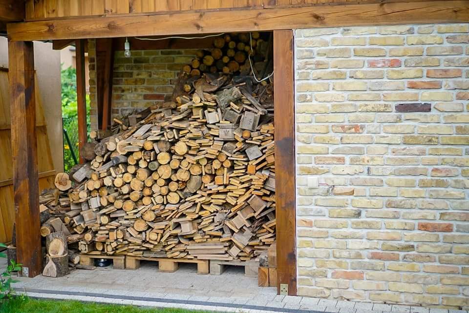 Wnęki i skład na drewno opałowe – solidnie wykonane z cegły retro, z odpowiednią wentylacją i dostępem,